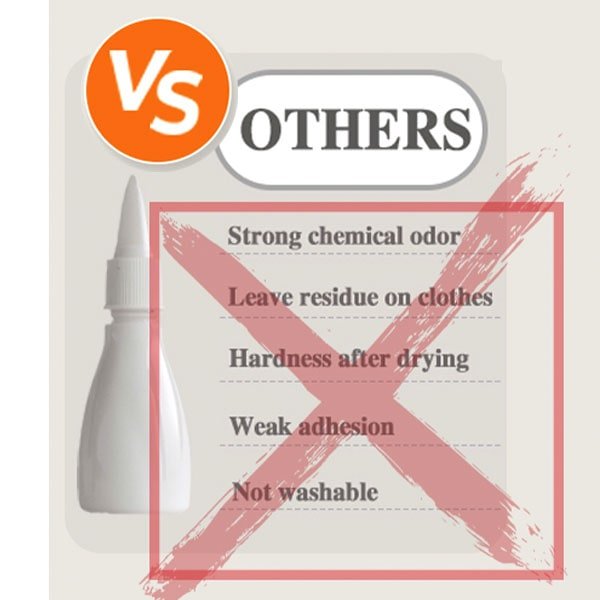 The Fabric Glue is designed with a unique anti-clogging precision tip, allowing you to apply the right amount exactly where needed with no mess.