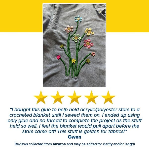 The glue dries clear and remains flexible and soft, ensuring the fabric remains comfortable to wear or use.