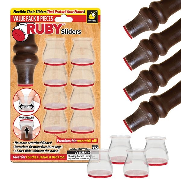 Sliders work great on chair legs! If too large , just put a drop of crazy glue on the inside & put slider on , they will hold & stay on!!!! RUBY SLIDERS ARE SMOTH SLIDING ON A KITCHEN FLOOR, ESPECIALY ON ( WOOD FLOORS )!!!!