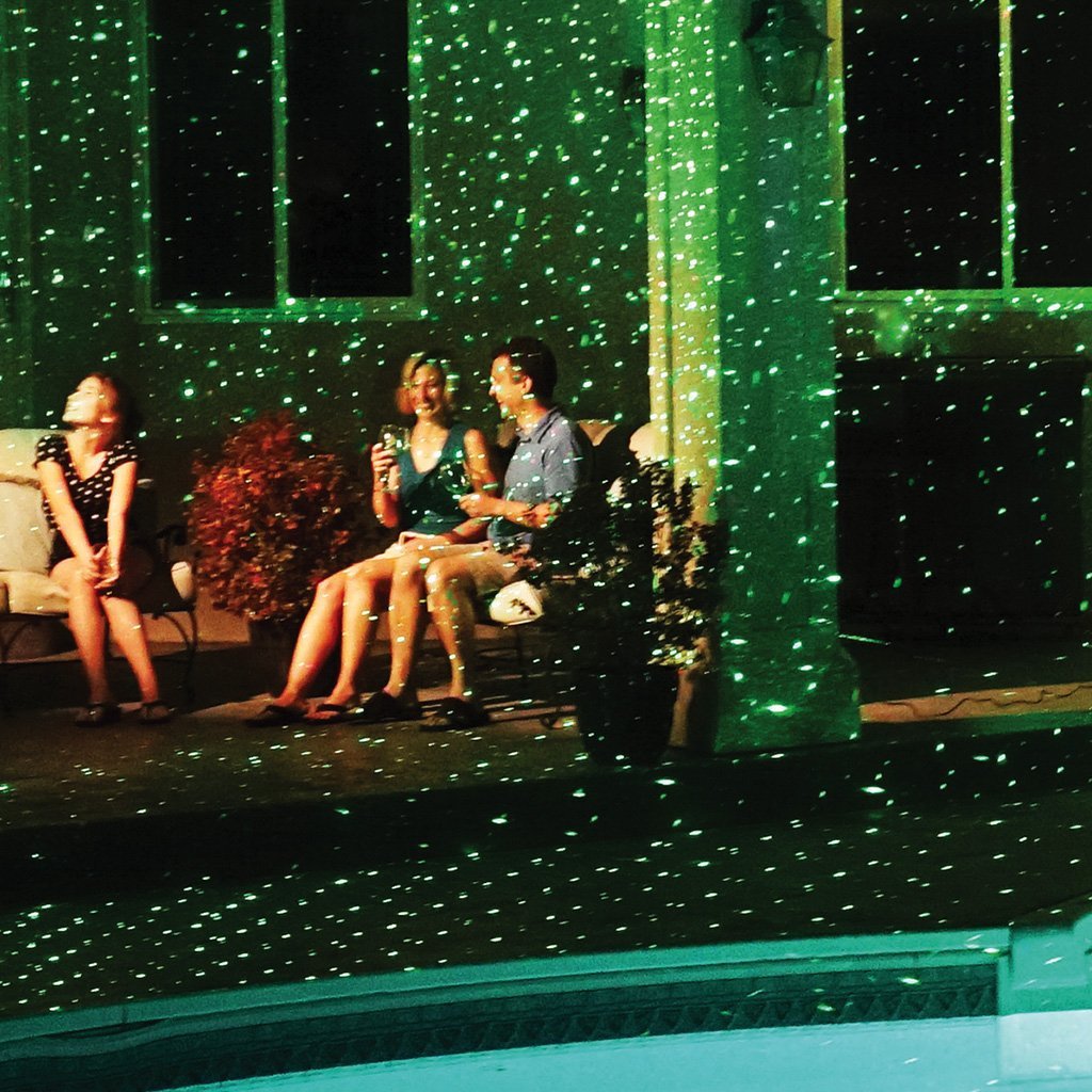 String lights are a tangled mess and when one light blows, they all go out. Star Shower Motion is the EASIEST way to decorate the outside of your home, projecting thousands of festive laser lights! ust use the extra-long stake to place the Star Shower at the end of your yard. You can even choose between moving or static lights! Rain or snow, you’ll never have to run out to take Star Shower indoors. The weatherproof casing can withstand wet weather events! Say goodbye to spotty lighting jobs. One Star Shower Motion unit covers an entire home up to 3200-feet. Want even more spectacular results? Use two or more to be the star on your block!